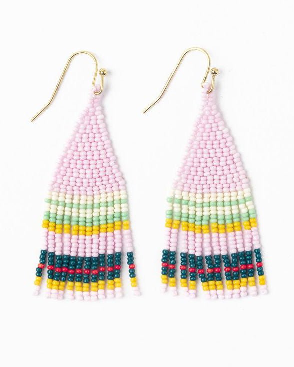versatile enough for day or night. these unique handmade earrings make an artistic statement piece you’ll reach for again and again. earrings feature delicate seed beads in a colorful and springy striped design.?
