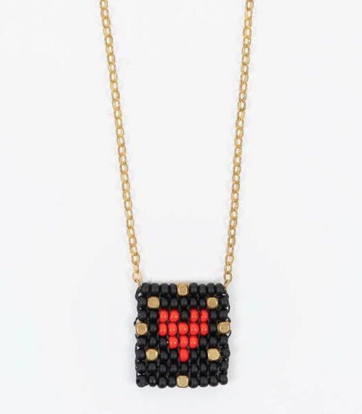delicate beaded motifs make this an adorable necklace for yourself or a loved one. beautifully beaded tag is secured by a fine gold-plated brass chain and held with a gold plated lobster claw clasp with three size adjustments. it makes a lovely gift.?