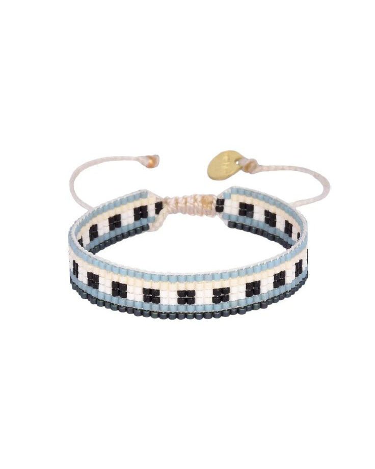beautifully beaded bracelet in a colorful striped design. thin bracelet is adjustable and looks great worn on its own or stacked with other bracelets.?