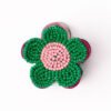 springy beaded bracelet featuring an array of pink glass beads and large pearl with painted cherry details.?