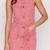 flirty mini dress in a pretty ditsy floral pattern with fun pops of lavender. dress features a crew neckline. button front with ties. ruffle cap sleeves. side pockets. a unique tiered silhouette. and a roomy. relaxed fit. sweet and springy dress is an easy to wear option for easter and other spring festivities.?