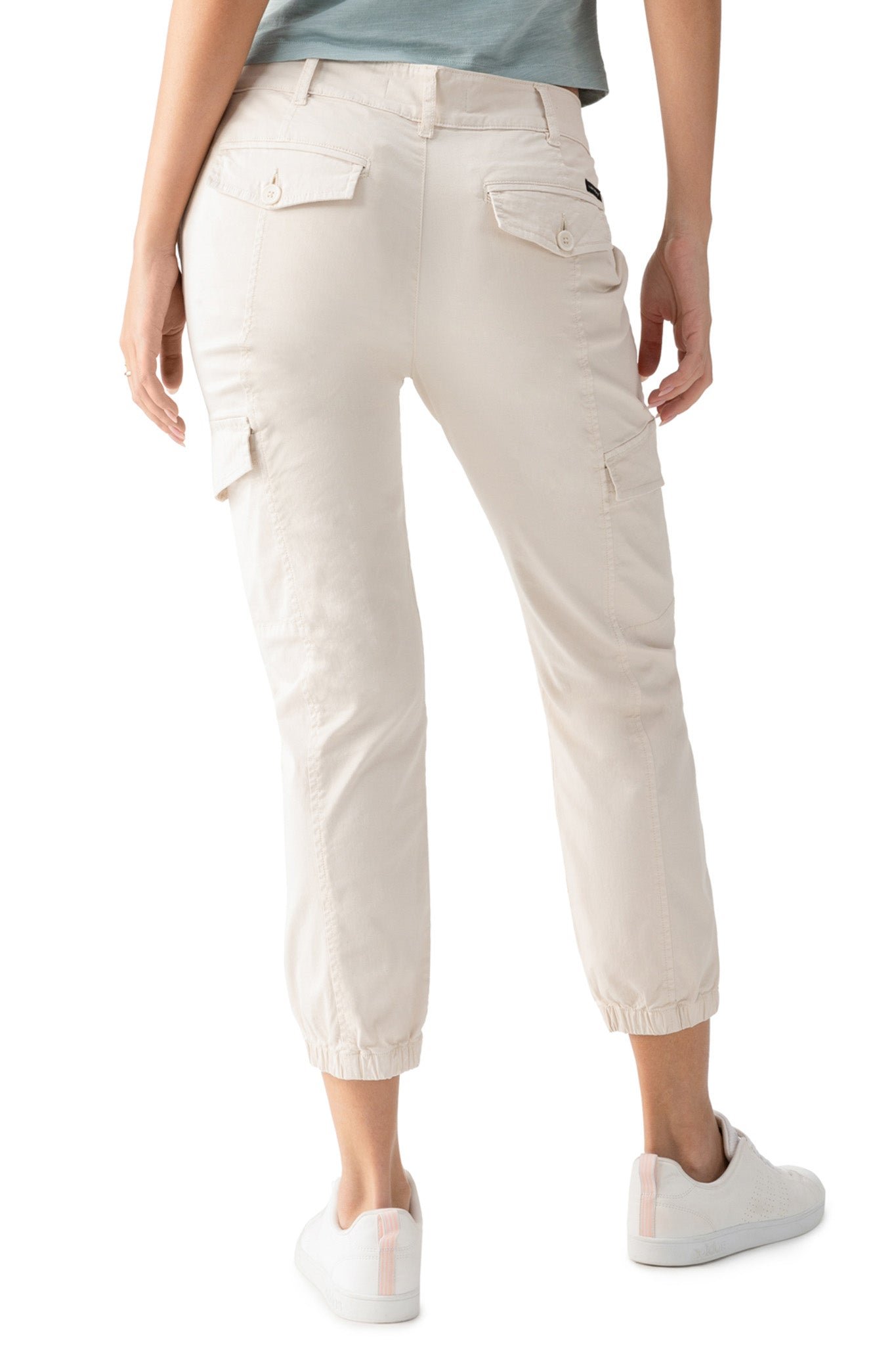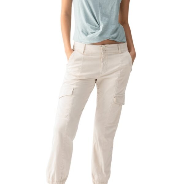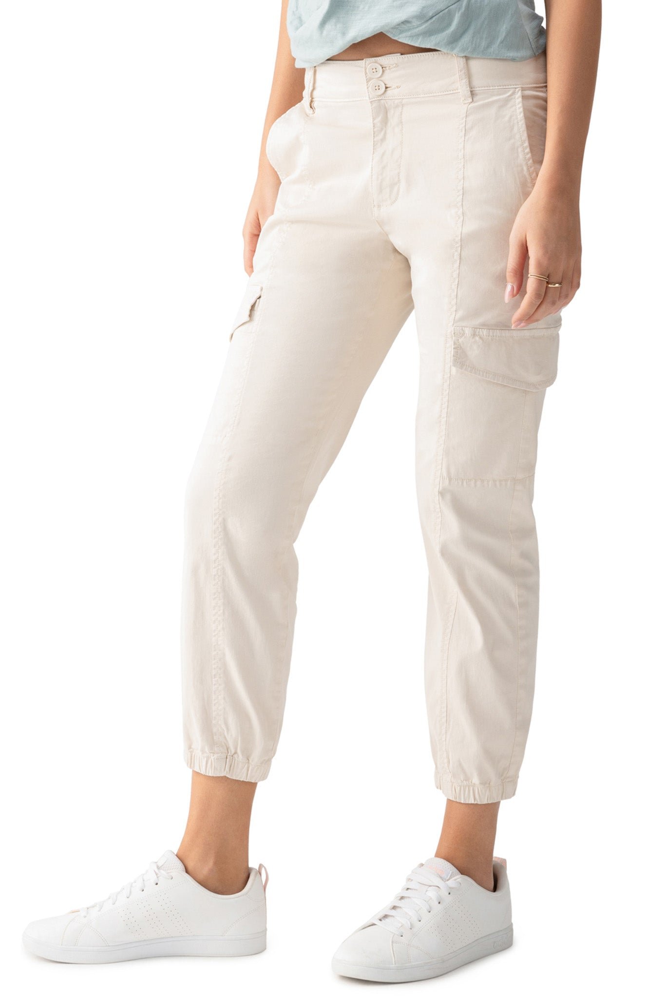 make any day a stylish mission with these off-white utility style pants. pants feature two military-inspired cargo pockets. elasticized cuffs. and a relaxed fit. pants are a great transitional piece to wear from summer into fall.?
