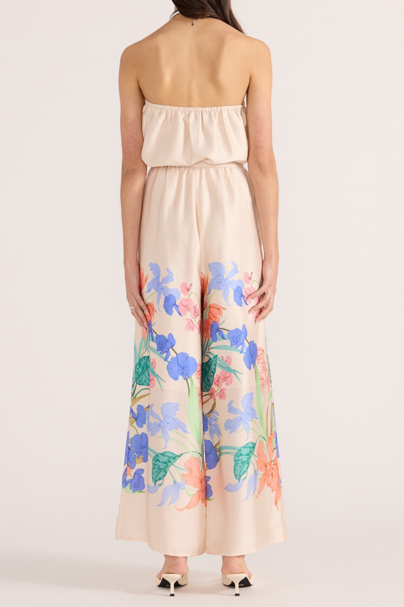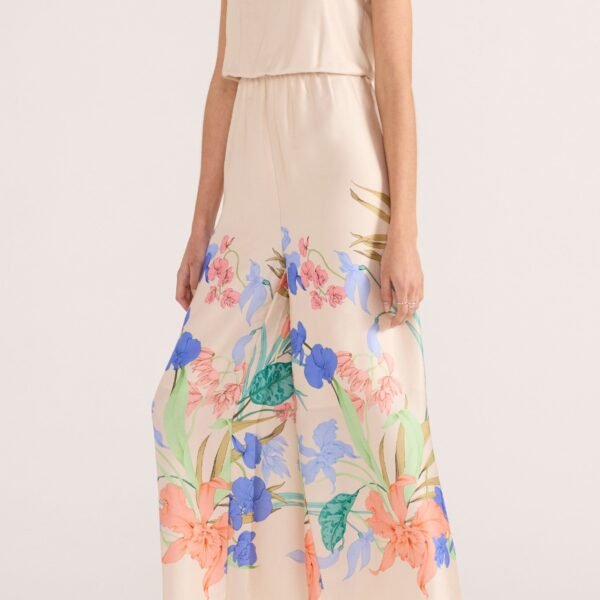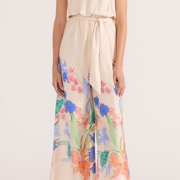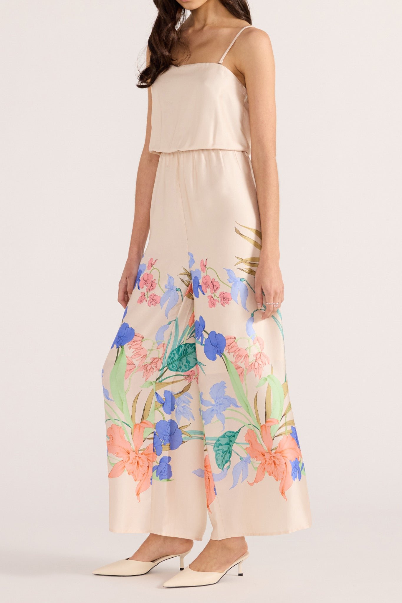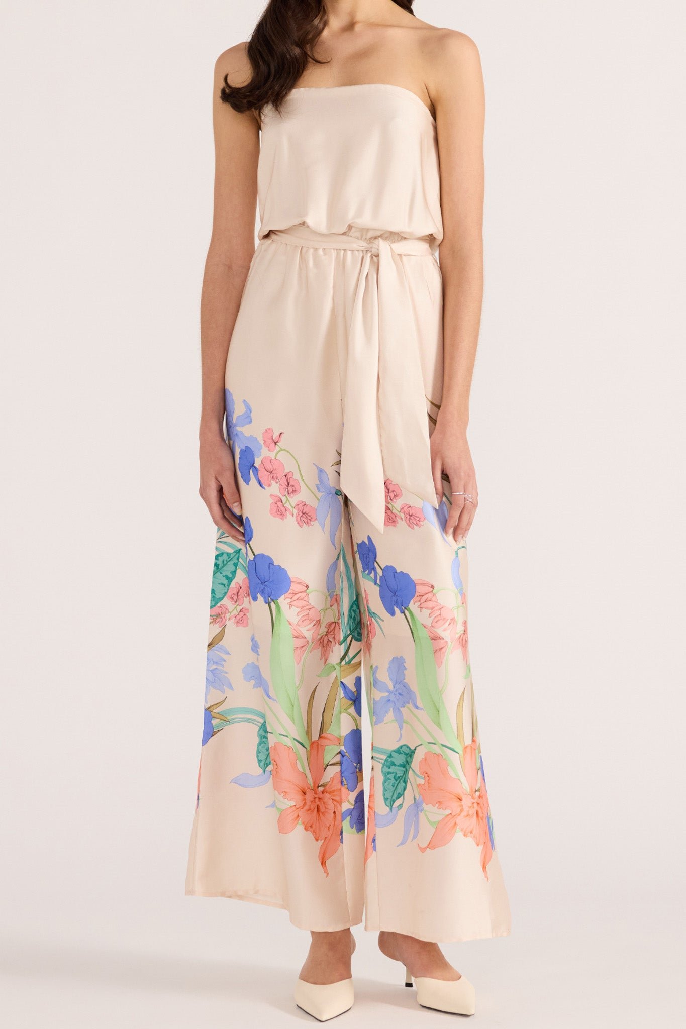 gorgeous and special belted jumpsuit with a lovely floral design. cream colored jumpsuit features thin removable straps (not pictured). an elastic waist with adjustable belt tie. and a flowy wide leg silhouette. jumpsuit has a shorts-length lining and runs true to size. it makes a striking outfit to wear to any special event this summer.?
